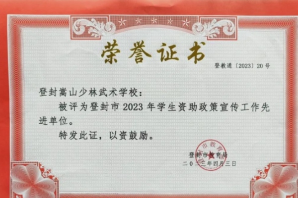 登封嵩山少林武术学校是一所在登封市教育局注册的九年一贯制正规学校。十余年的办学经验积累了良好的口碑,学校自2013年至今,曾被主管单位多次评为“民办教育先进单位”、“师德先进校”、“郑州市教育系统平安校园先进单位”。